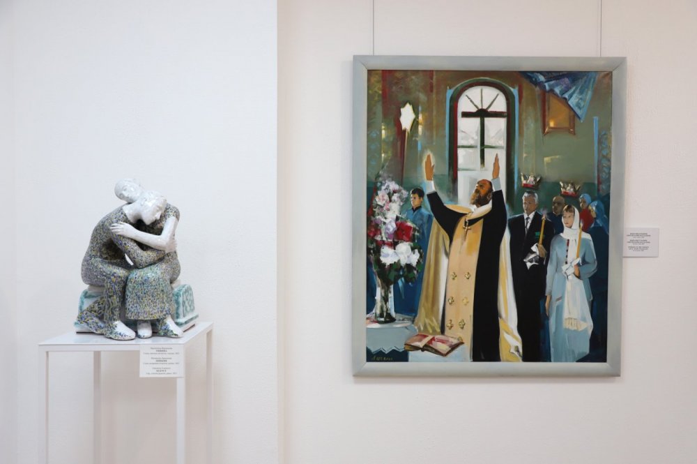 В экспозиции появились новые экспонаты: замечательные скульптурные композиции из керамики известных белорусских художниц Валентины Иваньковой «Тишина» (глина, цветные пигменты, глазури; 2023 г.), «Мамины руки» (глина, ангоб, глазури; 2023 г.) и Ольги Семашко «Разговор» (шамот, глазурь, обжиг; 2017 г.).